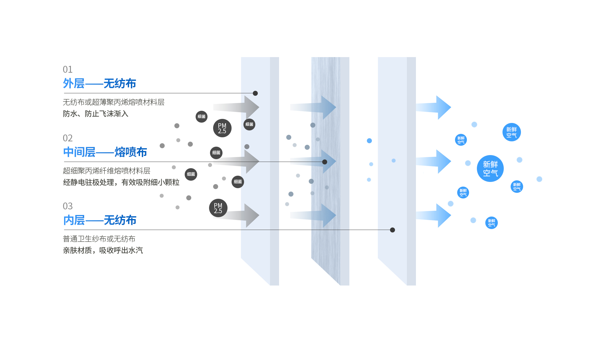 以N95口罩为例,是指在标准规定的检测条件下,口罩滤料对非油性颗粒物(如粉尘、酸雾、漆雾、微生物等)的过滤效率达到95%,可以有效隔离病毒。疫情期间,N95、N99等口罩成为一线医护人员必不可少的抗疫装备。